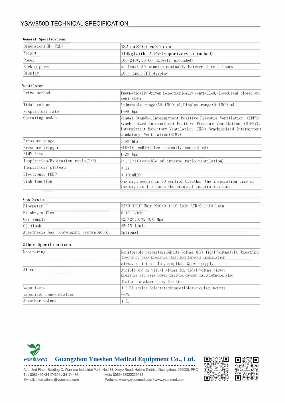 Reliable YSAV850D Anesthesia System. Versatile ventilation, 10.4" TFT display & ergonomic design for modern surgical environments.